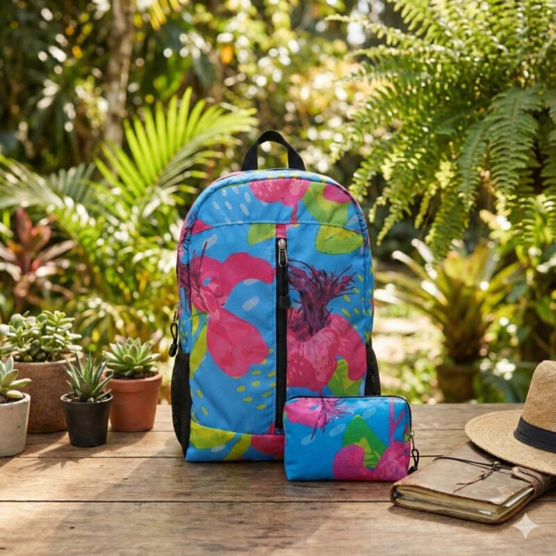 R$158,90O preço original era: R$158,90.R$79,90O preço atual é: R$79,90.Mochila dobrável com necesaire Hibisco