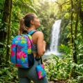 Mochila dobrável com necesaire Hibisco
