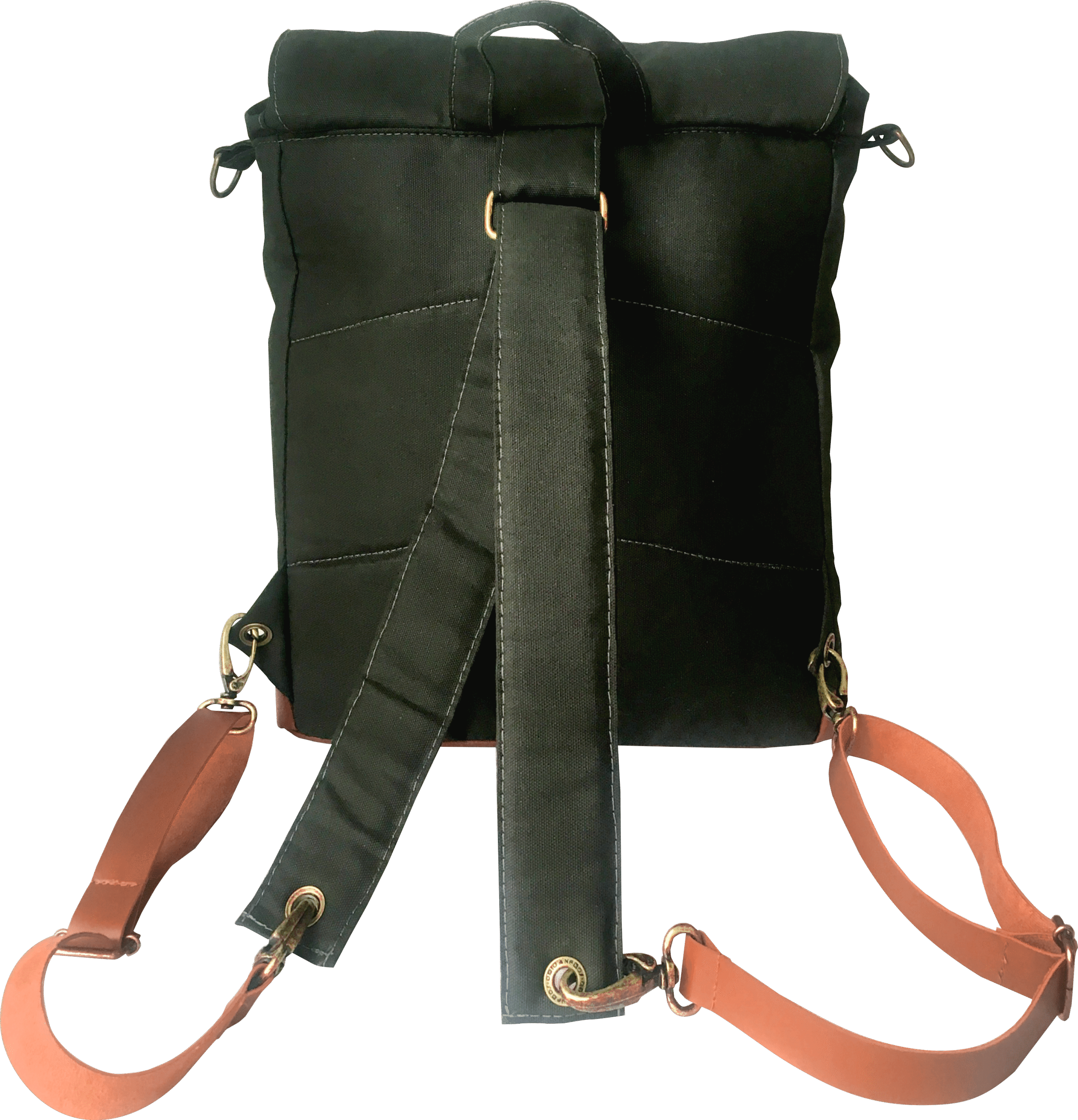 • Uma alça de mão e outra de ombro regulável. A mochila possui ilhoses e meia argola que permite usar como mochila nas costas ou bolsa carteiro.